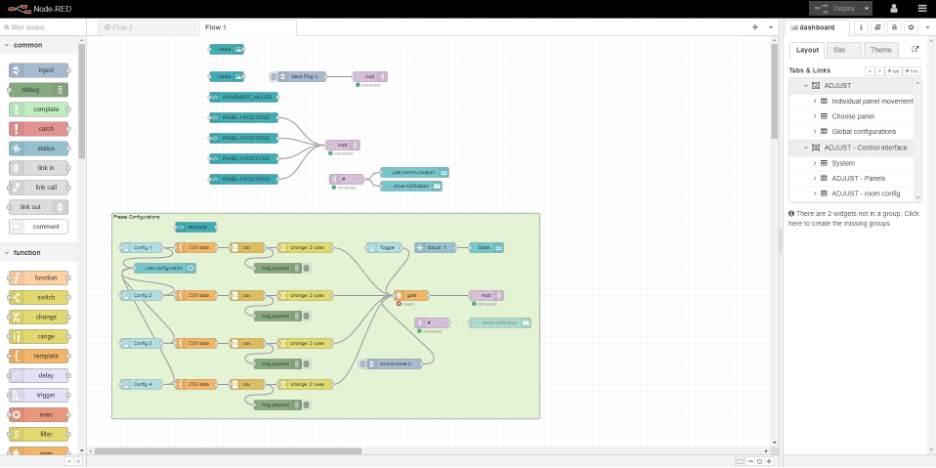 Software de controlo: Optou-se por desenvolver uma alternativa baseada na plataforma NODE-RED da IBM. O desenvolvimento foi concretizado correspondendo a dois softwares de controlo de todo o sistema. O primeiro destes softwares desenvolvido em linguagem JAVA. Um segundo software foi desenvolvido usando a plataforma NODE-RED, de desenvolvimento baseado num fluxo para programação visual, criada originalmente pela IBM para conectar dispositivos de hardware, APIs e serviços online como parte da Internet das Coisas.